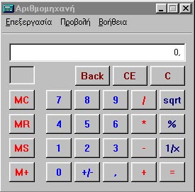 Το πρόγραμμα της αριθμομηχανής φορτώνεται στη μνήμη RAM του υπολογιστή μας και εμφανίζεται το παράθυρο της αριθμομηχανής: