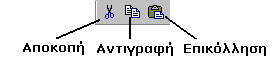 ".β) Αντιγραφή: Κάνουμε κλικ στο κουμπί "Αντιγραφή" (δύο σελίδες). Το επιλεγμένο κείμενο μένει στη θέση του και αποθηκεύεται στη μνήμη RAM. Στη συνέχεια κάνουμε κλικ στο σημείο του κειμένου, όπου θέλουμε να το αντιγράψουμε και πατάμε το κουμπί "Επικόλληση