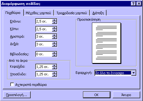 : Για να αλλάξουμε τα περιθώρια ενός μέρους του εγγράφου, επιλέγουμε το κείμενο και μετά ορίζουμε τα περιθώρια στην καρτέλα "Περιθώρια" και κάνουμε κλικ στην επιλογή "Επιλεγμένο κείμενο", στο πλαίσιο "Εφαρμογή".