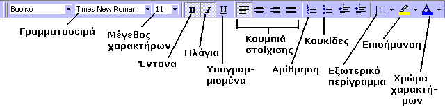 Χρησιμοποιώντας τα παραπάνω εργαλεία μορφοποίησης, μορφοποιείστε το κείμενο ως εξής :|