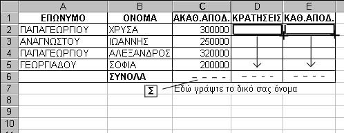 Επαναληπτική άσκησηΝα δημιουργήσετε το παρακάτω λογιστικό φύλλο και να το αποθηκεύσετε σε μια δισκέτα με το όνομά σας