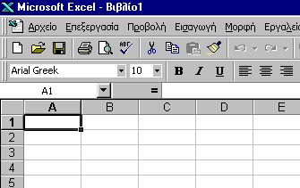 -Προγράμματα-Microsoft Excel (κλικ). Το βιβλίο εργασίας αποτελείται από φύλλα (φύλλο1, φύλλο2 κλπ.) και κάθε φύλλο έχει 256 στήλες (A,B,C κλπ.) και 65536 γραμμές (1,2,3 κλπ.). Δηλαδή μπορούμε μέσα στο ίδιο αρχείο, να έχουμε, περισσότερα από ένα, λογιστικά φύλλα (πχ η μισθοδοσία ενός υπαλλήλου μπορεί να καταχωρηθεί σε ένα βιβλίο με 12 φύλλα - ένα για κάθε μήνα του έτους). Τα τετράγωνα που εμφανίζονται στην οθόνη ονομάζονται κελιά. Ενεργοποιούμε ένα κελί κάνοντας κλικ μέσα σ’ αυτό.