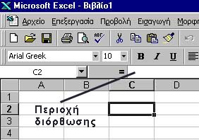 Διόρθωση των περιεχομένων ενός κελιού: Ενεργοποιούμε πρώτα το κελί που θέλουμε να διορθώσουμε και μετά κάνουμε κλικ στην περιοχή διόρθωσης όπου και κάνουμε τις απαραίτητες διορθώσεις. Αν δεν κάνουμε κλικ στην περιοχή διόρθωσης και αρχίσουμε απευθείας να πληκτρολογούμε μέσα στο κελί, τότε αντικαθιστάται όλο το προηγούμενο περιεχόμενό του μ' αυτό που πληκτρολογούμε.