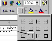 , επιλέγουμε τα κελιά στα οποία θέλουμε να προσθέσουμε περίγραμμα. Για να δούμε τα στυλ περιγράμματος που έχουμε στη διάθεσή μας, κάνουμε κλικ στο βέλος δίπλα από το κουμπί "Περιγράμματα"