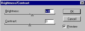 Image, την επιλογή Adjust - Brightness / Contrast (κλικ). Στο παράθυρο που εμφανίζεται, σέρνουμε το μικρό τρίγωνο δεξιά ή αριστερά (αρχικά βρίσκεται στη μέση των δύο οριζόντιων αξόνων φωτεινότητας και κοντράστ).