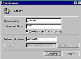 (πχ. OTENET).Κάνουμε διπλό κλικ στο εικονίδιο αυτό και εμφανίζεται το παράθυρο "Σύνδεση με". Πληκτρολογούμε το όνομα και τον κωδικό πρόσβασης (που δηλώσαμε στον παροχέα όταν κάναμε την αίτηση σύνδεσης) και στη συνέχεια κάνουμε κλικ στο κουμπί "Σύνδεση". Ο παροχέας θα κάνει επαλήθευση του ονόματος και του κωδικού μας…