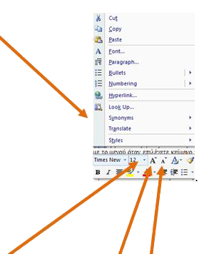 Από τις επιλογές μορφοποίησης της μικρής γραμμής εργαλείων μπορείς να μορφοποιήσεις άμεσα τη γραμματοσειρά του κειμένου. Η μικρή γραμμή εργαλείων εμφανίζεται αυτόματα όταν επιλέγεις κείμενο.