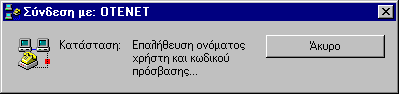 (πχ. OTENET).Κάνουμε διπλό κλικ στο εικονίδιο αυτό και εμφανίζεται το παράθυρο "Σύνδεση με". Πληκτρολογούμε το όνομα και τον κωδικό πρόσβασης (που δηλώσαμε στον παροχέα όταν κάναμε την αίτηση σύνδεσης) και στη συνέχεια κάνουμε κλικ στο κουμπί "Σύνδεση". Ο παροχέας θα κάνει επαλήθευση του ονόματος και του κωδικού μας…